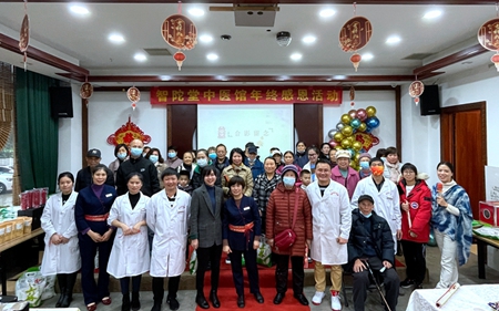 室外小雨淅沥,室内热情洋溢。1月16日上午,广西南宁市智陀堂中医馆在馆内举办“年终感恩回馈”活动,新老客户应邀参加。其中不乏年近八旬的老者,也有曾经瘫痪在床经过中医馆治疗恢复健康的患者,每个人脸上都洋溢着幸福满意的笑容。
