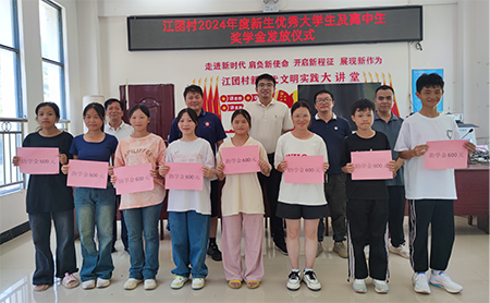 ▲图为该乡江团村奖励优秀学生现场