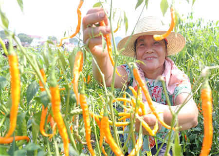 郭思中还与省内高校合作,将黄贡椒品种提纯复壮,让农户进一步增产增收。提纯复壮后的黄贡椒亩产能达1500公斤,产值达1.5万元以上。“相比以前亩产值2000元左右,如今黄贡椒亩产值翻了好几倍。”郭思中说。2020年,衡东三樟黄贡椒成功入选全国“十大名椒”,黄贡椒风头正劲。