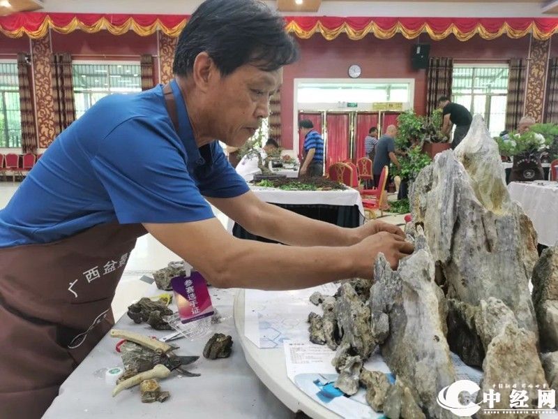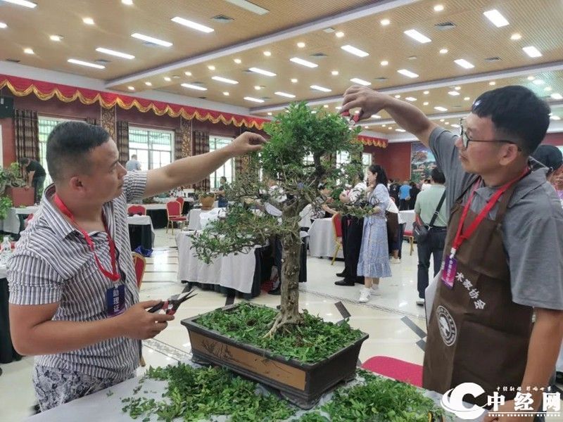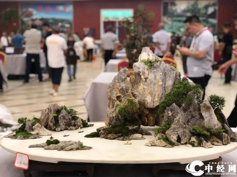 (部分参赛选手现场精心制作盆景)