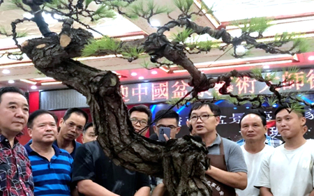 经过立意、裁剪、雕琢、攀扎、整形等多项操作,一盆立意独特、布局巧妙的精美黑松作品呈现在大家的眼前。在场的盆友们对徐昊先生的作品赞不绝口并致以最热烈的掌声。