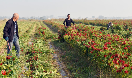 “我们早早地出来干活,一天能摘300多斤的辣椒,下来能挣100多块钱。离家近,非常方便。”看着一桶桶、一袋袋火红的辣椒,采摘村民刘西甫高兴地说。