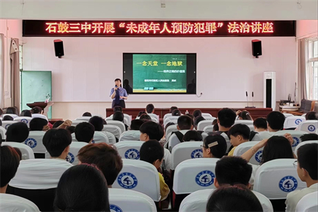 为进一步加强青少年学生的法律意识和法治观念,切实提高未成年学生预防违法犯罪意识,2023年6月9日,衡阳市石鼓区人民检察院走进石鼓区第三中学,开展预防未成年人违法犯罪专题法制讲座。