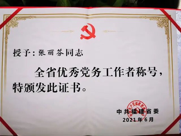 多年来,在张丽芬同志的带领下,亚明党支部先后荣获“城厢区主题党日活动基地”“莆田市十佳先进基层党支部”“城厢区五星级党组织”“全市五星级党组织”“全区先进基层党组织”“全市基层党建工作示范点”等荣誉称号,让党建成为引领企业发展的强大动力,赋能企业高质量发展。