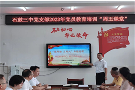 8月26日,湖南省衡阳市石鼓三中党支部组织开展“周五课堂”党员教育培训,培训班采取理论讲座、专题辅导、分享交流、观看影片等方式,对党员教师进行“充电赋能”。