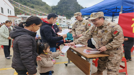 中经总网·中经在线广西巴马讯 为扎实做好2024年春季征兵工作,切实提高广大适龄青年应征入伍的知晓率和积极性,鼓励广大青年响应国家号召,踊跃报名参军。连日来,广西巴马瑶族自治县凤凰乡积极动员,周密部署,全面开展2024年春季征兵工作,吹响新年度征兵“集结号”。