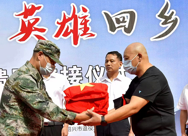 孙方燕、沈伟民、钱赛明、应元亮、何庆丰、金正洪等护送英烈回义乌荣归故里。义乌市人大常委会副主任、市新四军研究会会长颜新香、市新四军研究会副会长兼秘书长贾胜男率新四军研究会会员代表等在义乌市革命烈士陵园迎接傅红德烈士回家。