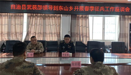 中经网·中经在线讯 1月30日上午,广西巴马瑶族自治县人民武装部部长李家皋、副部长姚宇一行深入东山乡开展春季征兵工作座谈会,并指导助力推进相应各项工作。