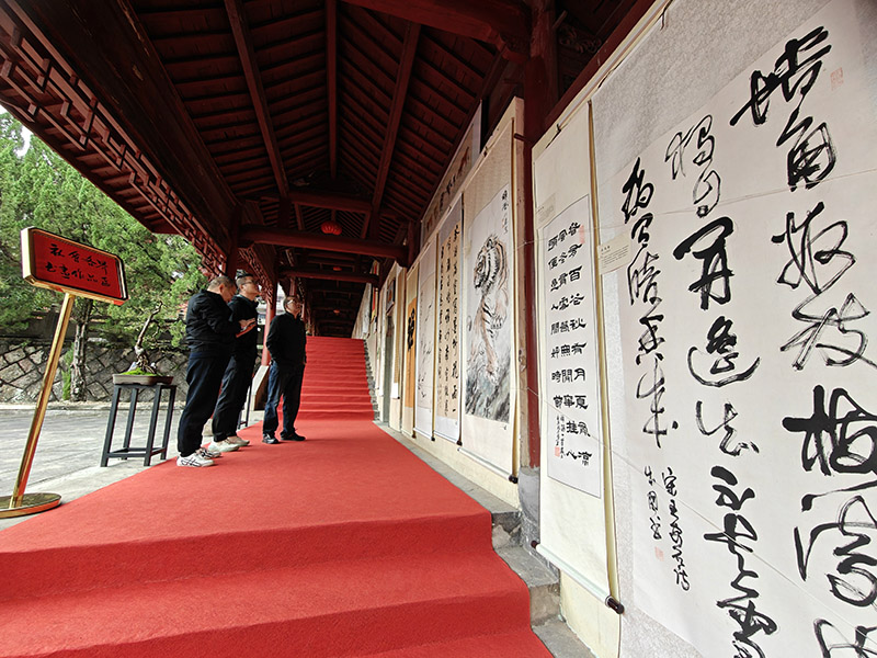 揭牌仪式结束后,与会嘉宾们还共同参观了大智禅寺书画院与中国明星书画院联合横店影视大学书画院举办的“祖国颂 横店缘”书画展。此次书画展自20日至24日为期五天,共展出了近300多幅书法作品。这些作品不仅涵盖了楷书、行书、草书等多种书法形式,还汇聚了国家级、省市级知名书画家的精品力作。每一幅作品都凝聚着书画家们的心血和智慧,展现了他们对传统文化的热爱和对艺术的不懈追求。
