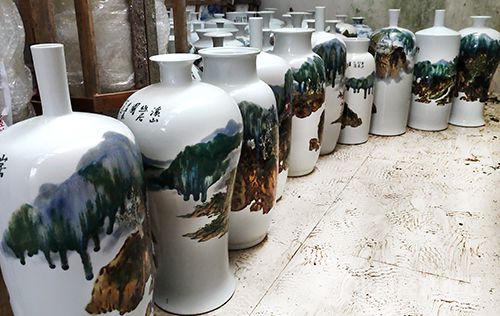 在千年瓷都景德镇,高温颜色釉窑变山水瓷画,也是现代版的泥、釉、火的凤凰涅槃,艺术品在熊熊烈火中,往往瓷器釉面会出现开裂、剥离、卷缩、起泡、无光、流釉等现象,烧造的艺术品或全军复没或九死一生,由于烧成率极低,绝大部分都成陪葬品。从鬼斧神工、放荡不羁的窑变、釉变、流变,剩下偶得的几件作品就成为了不可复制的稀世珍品,国之瑰宝。