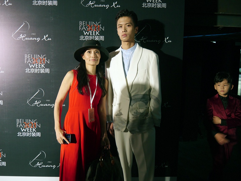 图:模特王保琳与本届服装周设计师黄勖合影留念