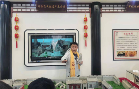 潘明生是归德古城砖雕手艺人,近年来,他深研这门传统技艺,将老青砖镶嵌雕刻与立体微建筑物进行融合,并大胆加入盆景观赏与使用美学思想,不断改造创新、与时俱进。潘明生还通过参加线下非遗文化展览、线上短视频推广等方式,提高归德砖雕的国内知晓率。如今他每年都要参加展示展演接受各种媒体采访并走进省、市院校进行传播传承归德砖雕文化宣传,让这门极具中国韵味的非遗技艺得以留下来、传出去。