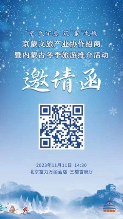 中经总网·中经在线北京讯(郑文华)为了深入落实京蒙协作旅游倍增计划,加强两地文化和旅游深度合作,11月11日,以“京”久不息 筑“蒙”文旅为主题,京蒙文旅产业协作招商暨内蒙古冬季旅游推介活动在京召开。北京市政协党组成员韩子荣、内蒙古自治区政协党组成员副主席魏国楠出席活动,北京市文化和旅游局、北京市支援合作办、北京市第七批内蒙古挂职干部团队区直及各盟市工作组及文旅部门、企业、媒体记者150余人参加活动。
