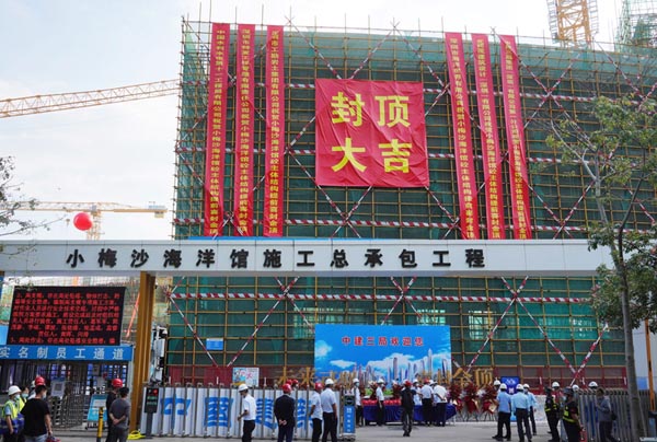 中经报道深圳11月30日讯(申成勇 通讯员韦建诚/文图)11月30日下午,全新深圳小梅沙海洋世界海洋馆砼主体结构封顶仪式在小梅沙顺利举行。深圳市特发集团有限公司、深圳市海洋世界有限公司、中建三局集团(深圳)有限公司、北建院建筑设计(深圳)有限公司、深圳市特发工程管理有限责任公司等项目建设、施工、设计等单位主要负责人,以及广大新闻媒体朋友应邀参加了本次活动。