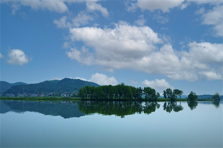 粼粼的波光,映照流动的云彩,鸟欢鸣,鱼唼喋,动静相宜,美不胜收。
