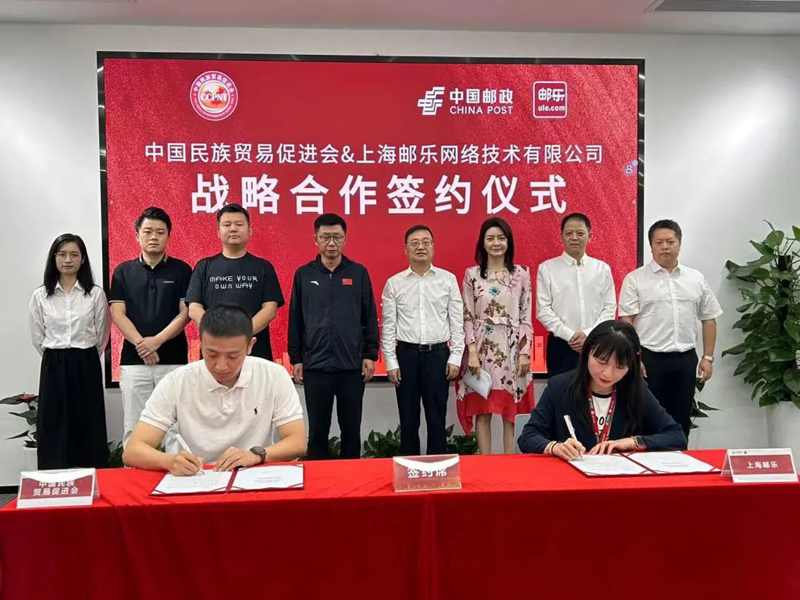 上海邮乐与中国民族贸易促进会签署战略合作协议。中国民族贸易促进会会长蓝军、上海邮乐公司董事长李唐一同出席签约仪式并进行交流座谈。蓝军会长一行首先参观了上海邮乐的企业文化展廊、办公区以及邮乐购体验店,详细了解了上海邮乐的发展概况、组织架构、直播带货以及爆款产品。
