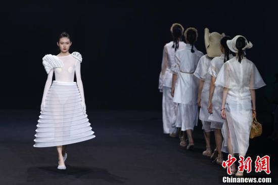 3月25日,模特在T台上展示参赛时装作品。当日,“汉帛奖”第29届中国国际青年设计师时装作品大赛在北京的中国国际时装周(2021/2022秋冬系列)上举行。